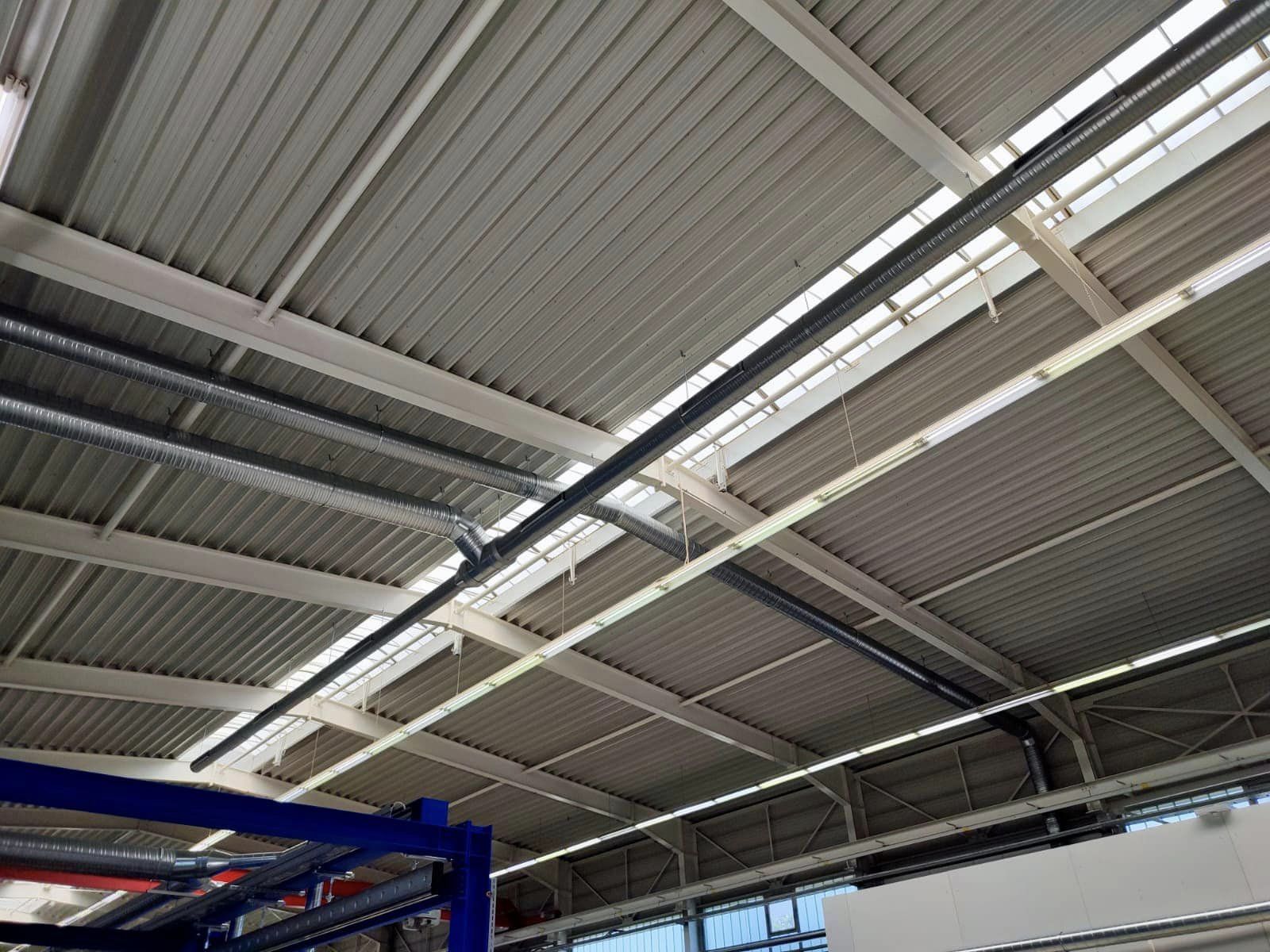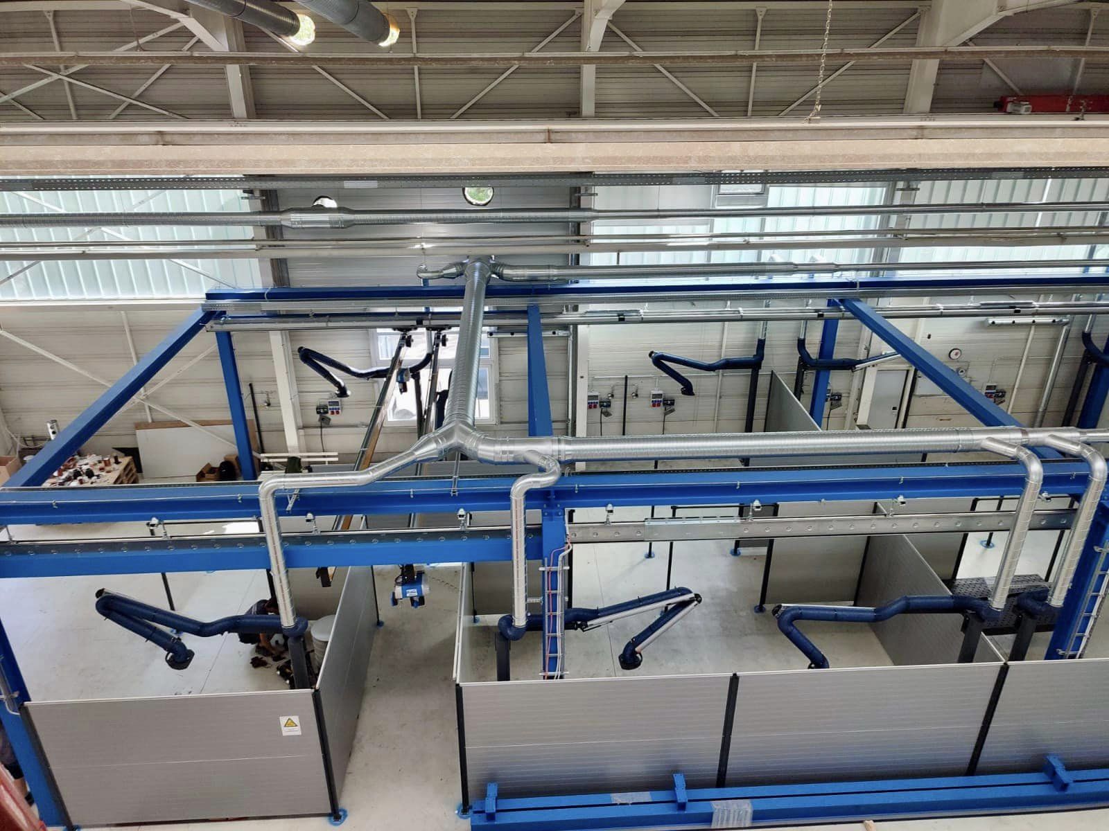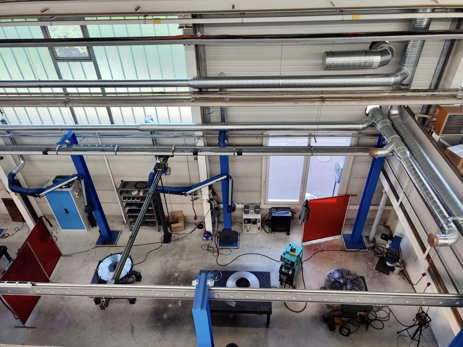 An den Schweißarbeitsplätzen wurden zum einen Absaugarme zur Direktabsaugung installiert – zum anderen ein Hallenlüftungssystem zur Reinigung der allgemein in der Halle entstehenden Rauche.
