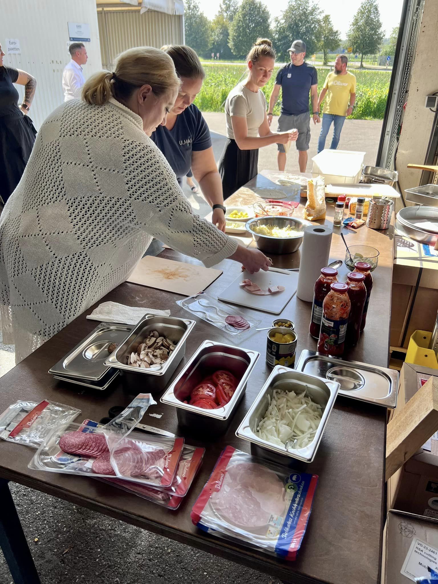 Von der Teigherstellung, übers Kneten bis zum Backen – alles aus vier ULMATEC-Händen. Nur die Belegung durfte jeder selbst vornehmen und so die Pizza auf seinen Geschmack abstimmen.