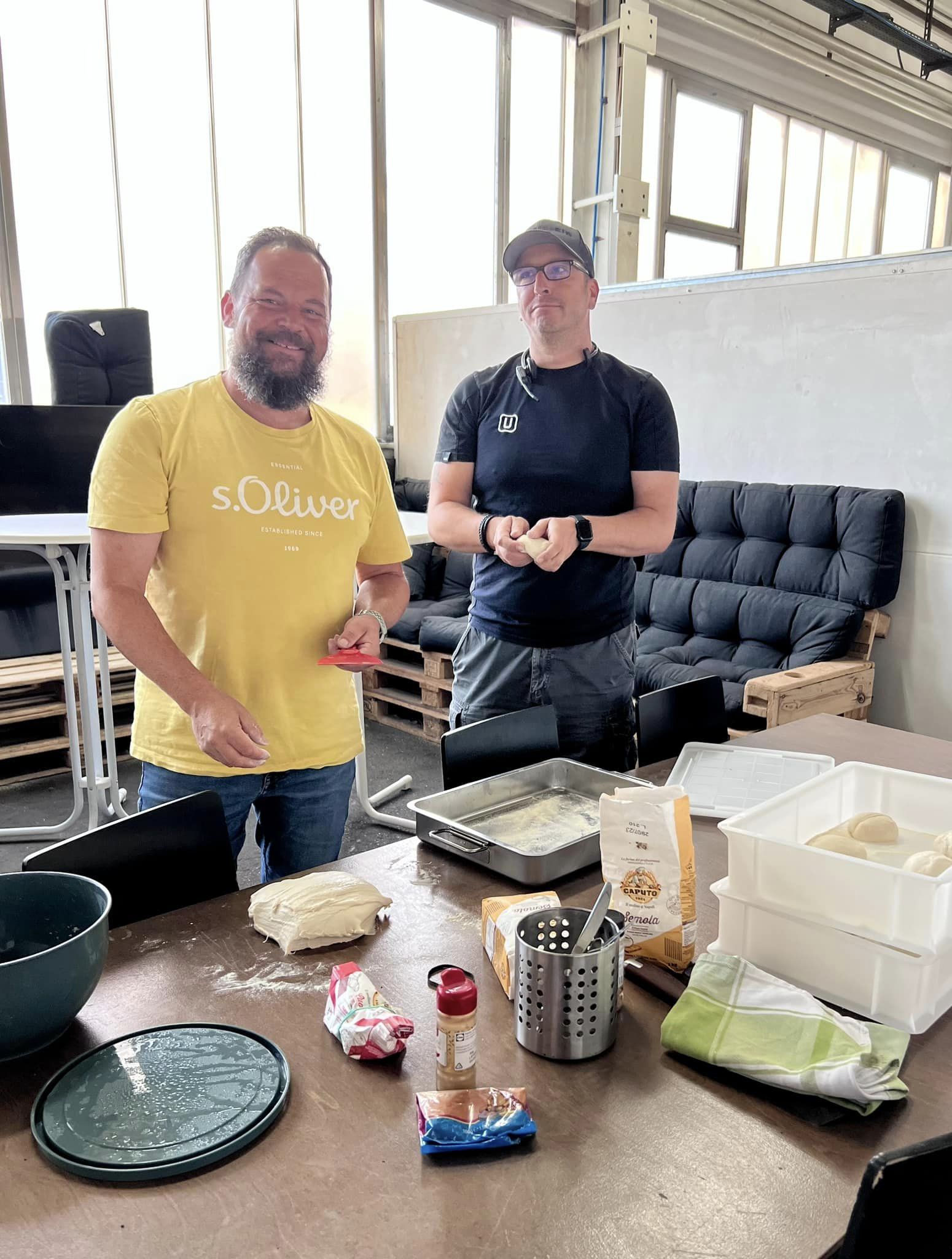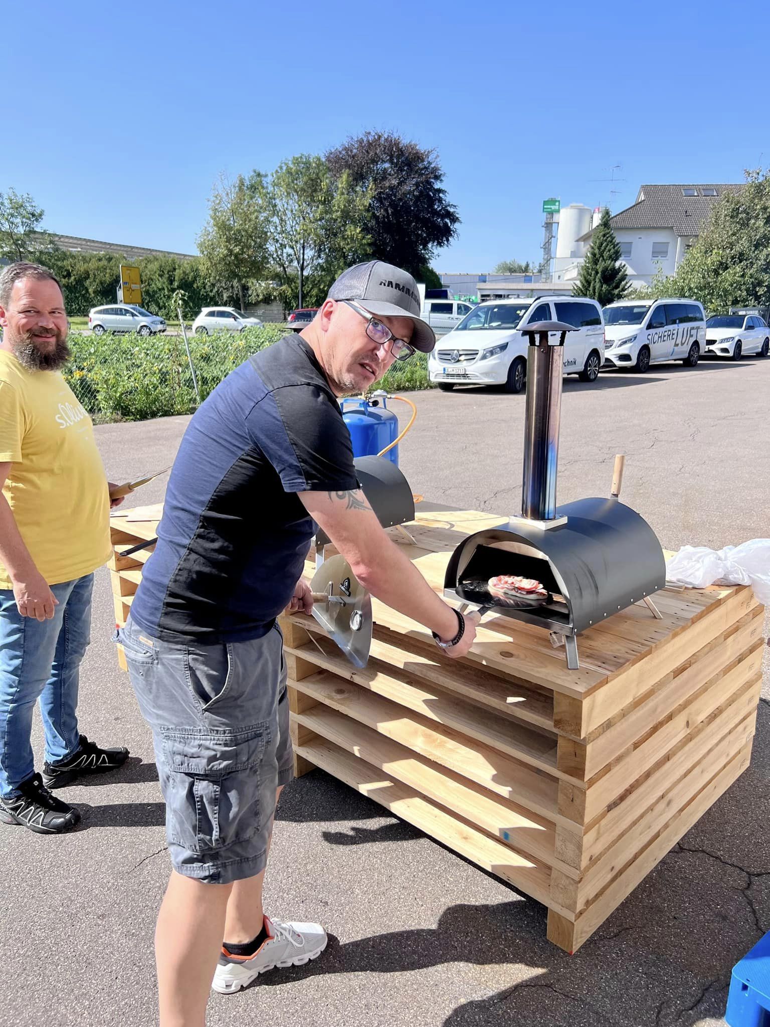 Heute haben es sich Karsten und Daniel nicht nehmen lassen Pizzaöfen mitzubringen, um für alle Mitarbeiter Pizza zu backen.