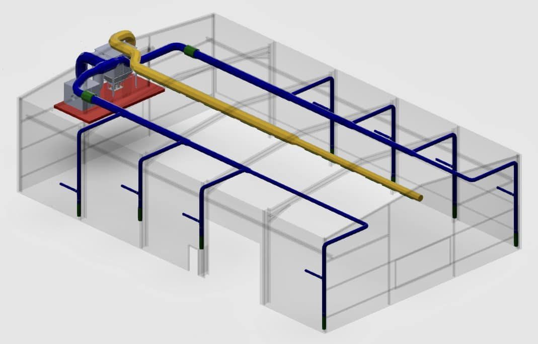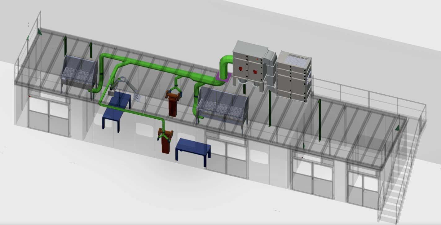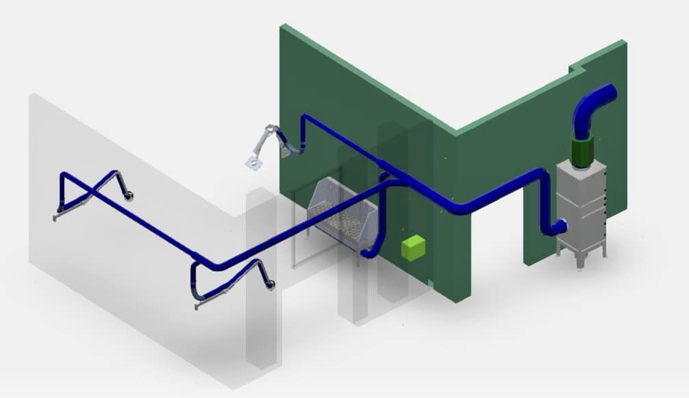 Die detaillierten 3D-Zeichnungen helfen den Kunden bei der Vorstellung unserer Absaugsyszeme in deren Produktionen, dienen der Projektfreigabe und werden auch jeder Dokumentation angehängt.