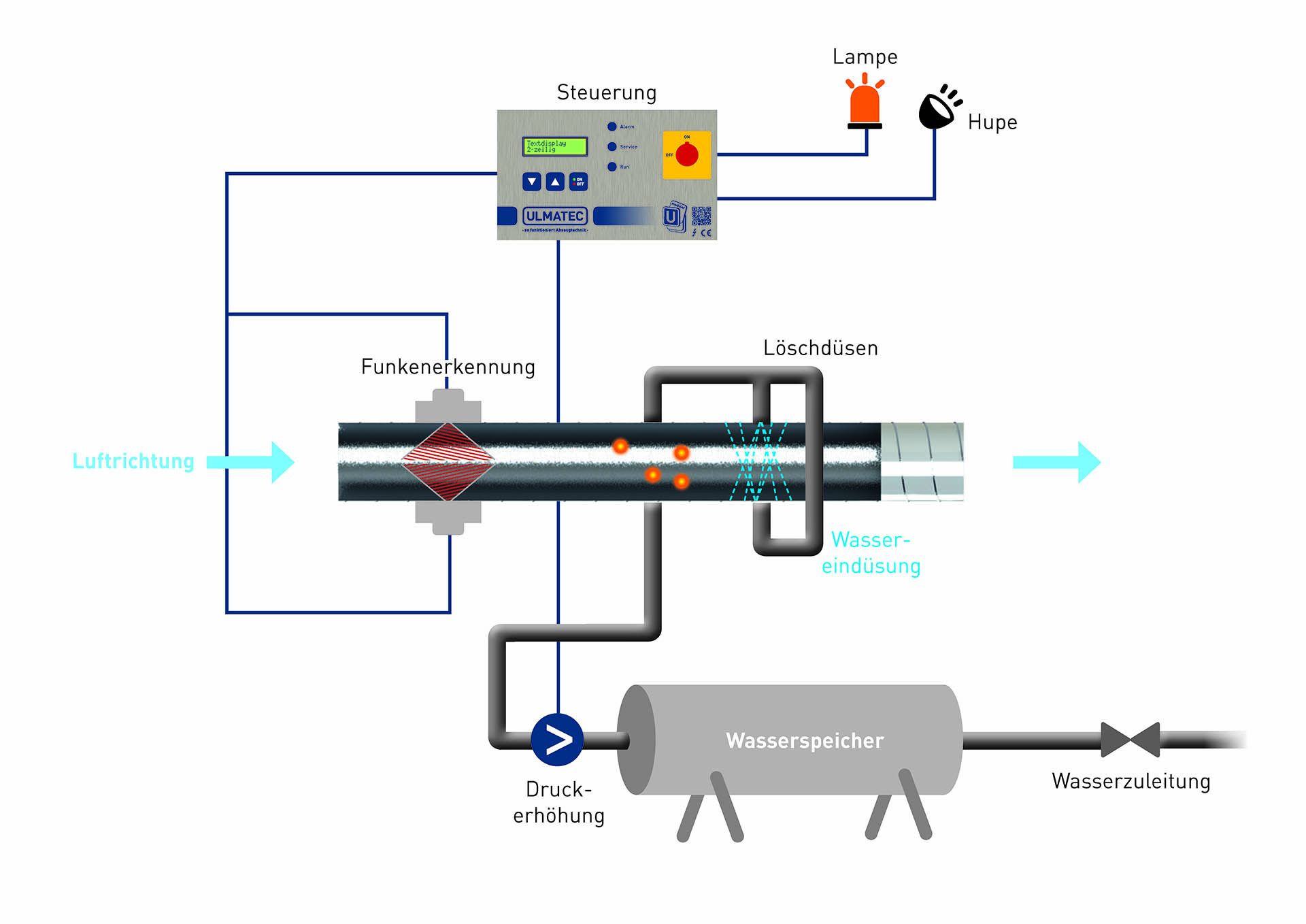 StartseiteProdukte & ProjekteBrand- & ExplosionsschutzBrandschutz Grundlagen Brandschutz Brände stellen eine Gefahr für Mitarbeiter, Sachwerte und nicht zuletzt auch für die Existenz eines Unternehmens dar. Sie entstehen gleichermaßen wie Explosionen durch die Kombination von Luft/Sauerstoff, brennbarem Material und einer wirksamen Zündquelle. Jetzt Beratung anfragen Brennbare Stoffe Zu den brennbaren Staubarten zählen u.a. Holz, Faserstoffe, Kunststoffe, Harze, Aluminium, Edelstahl und sonstige Metalle sowie deren Legierungen. Verunreinigungen des Materials durch Öle, Emulsionen, Fasern oder Farbreste erhöhen das Brandrisiko zusätzlich. Zündquellen Mögliche Zündquellen können heiße Oberflächen oder Partikel, heiße Gase, mechanisch erzeugte Funken, statische Elektrizität, Flammen oder exotherme Reaktionen einschließlich der Selbstentzündung von Stäuben sein. Das Einbringen einer Zündquelle lässt sich nicht vollständig vermeiden und stellt somit eine permanente Gefahr dar. Richtlinie Betroffener DIN EN ISO 19353:2016-07 Sicherheit von Maschinen – Brandschutz Betreiber VDI 2263 Blatt 6 Brand- und Explosionsschutz an Entstaubungsanlagen Betreiber VDS 3445 Brandschutz an Entstaubungsanlagen Betreiber TRGS 800 Brandschutzmaßnahmen Betreiber Im Gegensatz zum Explosionsschutz, welcher über die gesetzlichen ATEX-Richtlinien klar geregelt ist, gibt es für den Brandschutz keine eindeutigen Regelungen, wodurch die Verantwortung im Rahmen der Arbeits- und Produktionssicherheit beim Betreiber liegt. Unter diesem Gesichtspunkt empfehlen wir daher den Einsatz geeigneter Filteranlagen für alle brandgefährdeten Staubarten. Brennverhalten & Brennzahlen Das Brennverhalten wird in Brennzahlen von eins bis sechs angegeben und erlaubt eine grobe Abschätzung, wie sich ein abgelagerter Staub entzündet und nach der Entzündung verhält.BZ 1: Kein Anbrennen (Kochsalz)BZ 2: Kurzes Anbrennen und rasches Auslöschen (Weinsäure)BZ 3: Örtliches Brennen oder Glimmen ohne Ausbreiten (Milchzucker)BZ 4: Ausbreiten eines Glimmbrandes (Tabak)BZ 5: Ausbreiten eines offenen Brandes (Schwefel)BZ 6: Verpuffungsartiges Abbrennen (Schwarzpulver) Sicherheit für Betreiber Um im Ernstfall abgesichert zu sein, empfehlen wir eine Gefahrenbeurteilung durch einen akkreditierten Brand- und Ex-Schutzbeauftragten bspw. durch TÜV, DEKRA oder Ihrer Versicherung.Sollte es trotz aller Maßnahmen durch Einsaugen eines Funkens zu einem Brand kommen, finden Sie eine detailierte Anleitung zum Verhalten im Brandfall direkt an der Anlage oder der zugehörigen Betriebsanleitung. Zusätzliche Sicherheit bieten unsere optionalen Branschutzvorrichtungen wie eine automatische Löschmitteleindüsung, Rauchmelder oder eine Löschklappe zur manuellen Löschung. Empfohlene Maßnahmen Gefahrenbeurteilung durch akkreditiertes Unternehmen oder internen SicherheitsbeauftragtenBedienung der Anlagen nur durch geschultes PersonalRegelmäßige BrandschutzübungenBereithalten einer Ersatz-LöschflascheJährliche Wartung und Reinigung der AnlageRegelmäßige Entleerung des Austrags Filtereinheit Rohrsystem ULMATEC Brandschutzstufen Brandschutzmaßnahmen müssen getroffen werden, wenn die Gefahr besteht, dass durch eingesaugte Zündquellen Filterbrände entstehen können. Durch ULMATEC Löschsysteme können Funken bereits im Rohrsystem detektiert und gelöscht werden oder in der Filteranlage selbst durch zusätzliche Löschvorrichtungen. 1 Löschklappefür manuelle Löschung 2 C-Anschlusszur Flutung 3 Rauchmelderinnerhalb der Anlage 4 Vorabscheider 5 Zündquellenfreie &leitfähige Bauweise 6 Filterbeschichtung durch Precoat-Einheit 7 Funkenerkennung &Löschmitteleindüsung Unsere Brandschutzmaßnahmen erstrecken sich von der Erkennung bis hin zur Löschung.Bei der Erkennung werden mögliche Zündquellen rechtzeitig festgestellt, um sie durch Löschung vor dem Eintritt in die Filterkammer zu eliminieren. Hierfür setzen wir geprüfte und zugelassene Systeme zur Funken- und Temperaturdetektion ein.Durch entsprechend dimensionierte Löschvorrichtungen – teilweise auch mit Druckerhöhung – gewährleisten wir maximale Sicherheit für Ihr Absaugsystem. ULMATEC-Maßnahmen zur Brand- und ExplosionsvermeidungPrecoatierung für FilterelementeFunkerkennung & RauchdetektorLöschklappe & C-AnschlussZyklonvorabscheiderLöschmitteleindüsungZündquellenfreie und leitfähige Bauweise REFERENZEN PLZ: 51789Land: Deutschland PLZ: 74405Land: Deutschland PLZ: 86609Land: Deutschland PLZ: 86609Land: Deutschland PLZ: 86609Land: Deutschland PLZ: 36225Land: CZ PLZ: 74363Land: Deutschland PLZ: 88285Land: Deutschland PLZ: 78476Land: Deutschland PLZ: 5251Land: Österreich